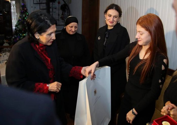 ცნობისათვის, პრეზიდენტი ღონისძიებაზე გიგა ოთხოზორიას შვილებთან და 11 შვილის დედასთან ერთად მივიდა.