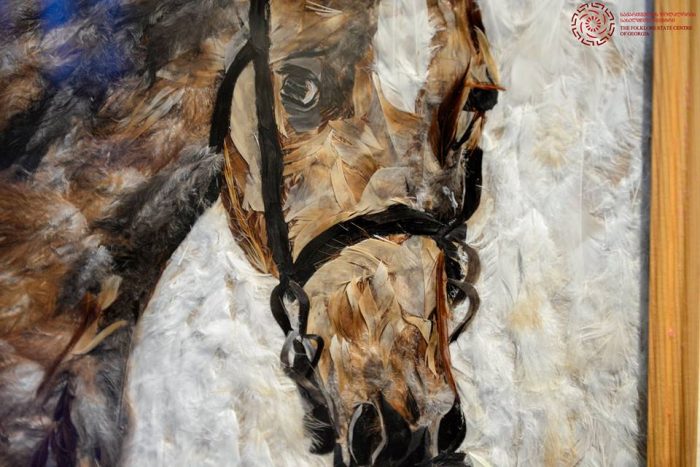 ფოლკლორის ცენტრის დარბაზში ბუმბულებისგან შექმნილი ნამუშევრების უნიკალური გამოფენა გაიხსნა