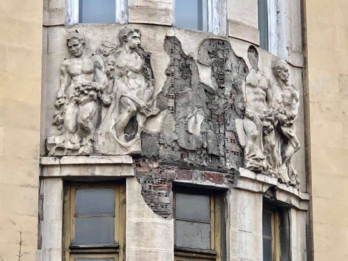ერთ ადგილას უკვე ჩამოიშალა სკუპლტურული კომპოზიცია. მალე სხვებიც მიჰყვება, რადგან ყველა მათგანი დაბზარულია.