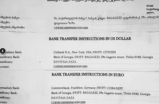 მოკრძალებით ვაქვეყნებ ანგარიშის ნომერს: GE83BG0000000676591000 (დაწვრილებით იხ. ფოტოზე).