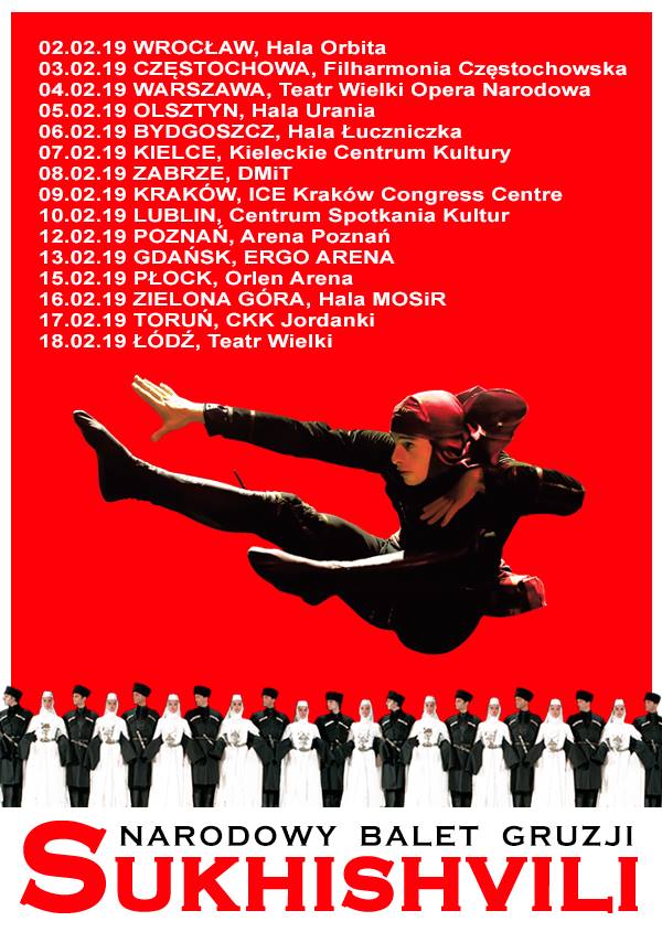 „სუხიშვილების“ ტურნე პოლონეთიდან იწყება. პირველი კონცერტი ნაციონალურმა ბალეტმა ქალაქ ვროცლავში გამართა. გასტროლი 2 აპრილს დასრულდება.