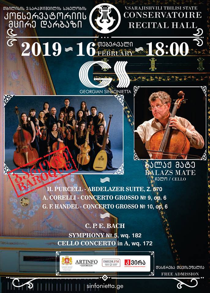 „საქართველოს სინფონიეტა“ 2019 წლის საკონცერტო სეზონს ხსნის. 16 თებერვალს, 18:00 საათზე, თბილისის სახელმწიფო კონსერვატორიის მცირე დარბაზში ბაროკოს მუსიკის კონცერტი გაიმართება. სოლისტი ბალაჟ მატე (ჩელო) იქნება.