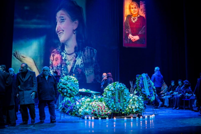მარჯანიშვილის თეატრში, სადაც მსახიობის სამოქალაქო პანაშვიდი მიმდინარეობდა პოლიტიკოსები და საზოგადოებისთვის ცნობილი პირები იმყოფებოდნენ.