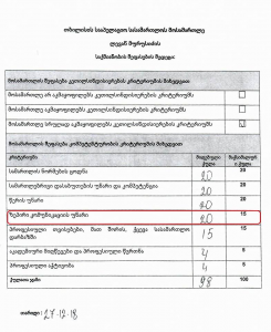 თბილისის სააპელაციო სასამართლოს მოსამართლე ლევან მურისიძეს იუსტიციის უმაღლესი საბჭოს ერთ-ერთმა წევრმა 15-ქულიან შეფასებაში 20 ქულა დაუწერა.