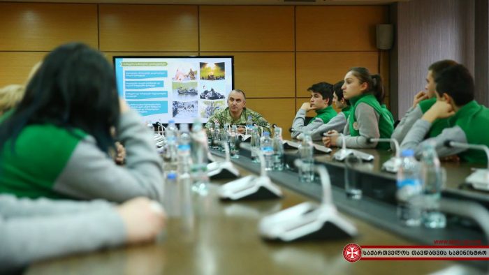 პოლკოვნიკმა არჩილ ომიაძემ კი მოსწავლეებს საქართველოს თავდაცვის ძალების შესახებ პრეზენტაცია წარუდგინა და საქართველოს სამხედრო ისტორიის, თავდაცვის ძალების მიზნებისა და ღირებულებების, სამხედრო პროფესიის არსის, ასევე – თანამედროვე გამოწვევების შესახებ მნიშვნელოვანი ინფორმაცია მიაწოდა.