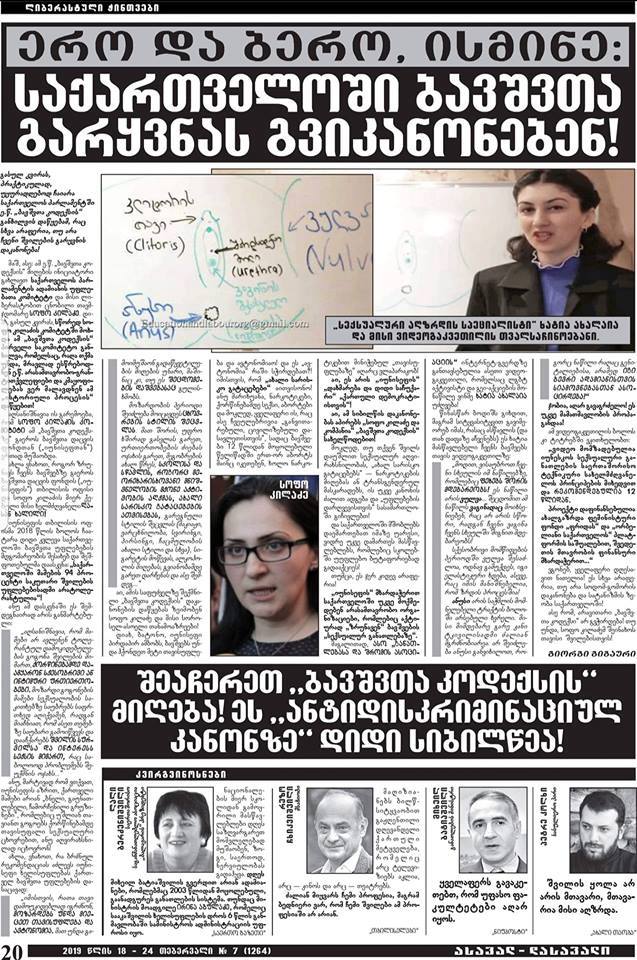 შეგახსენებთ, რომ გაზეთმა „ასავალ-დასავალმა“ დღვანდელ ნომერში სტატია გამოაქვეყნა სათაურით: „ერო და ბერო ისმინე: საქართველოში ბავშვათა გარყვნას გვიკანონებენ“; „შეაჩერეთ „ბავშვა კოდექსის“ მიღება! ეს „ანტიდისკრიმინაციულ კანონზე“ დიდი სიბილწეა!“