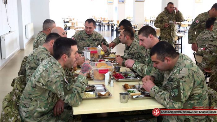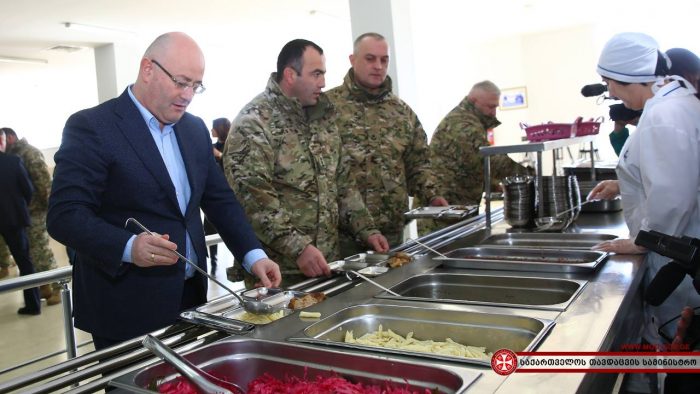 „ლევან იზორიამ და მედიის წარმომადგენლებმა I ქვეითი ბრიგადის მე-11 ბატალიონის პირად შემადგენლობასთან ერთად ჯარისკაცის ულუფა დააგემოვნეს. თავდაცვის მინისტრი ჟურნალისტებთან ერთად სამხედრო ბაზის სამზარეულოში სადილის მომზადების პროცესს დაესწო და საწყობში პროდუქტების მარაგი დაათვალიერა. პროექტი – „მედია ჯარში“ უწყების გამჭვირვალობისა და თავდაცვის ძალებში მიმდინარე პროცესების, ასევე სამხედრო მოსამსახურეების ყოველდღიური ცხოვრების შესახებ მედიის წარმომადგენლებისა და საზოგადოების ინფორმირებულობის გაზრდას ისახავს მიზნად“,- ნათქვამია სამინისტროს ინფორმაციაში.