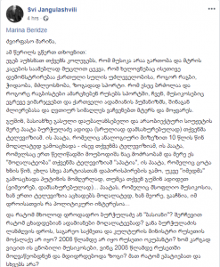 პოსტი იხილეთ ვრცლად: https://www.facebook.com/svi.jangulashvili/posts/10205530524178230