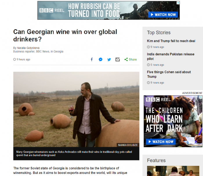 „შეუძლია თუ არა ქართულ ღვინოს გადაიბიროს მსოფლიო ღვინის მომხმარებლები?” – სტატიას ამ სათაურით მსოფლიოში ცნობილი გამოცემა „ბი-ბი-სი“ აქვეყნებს.