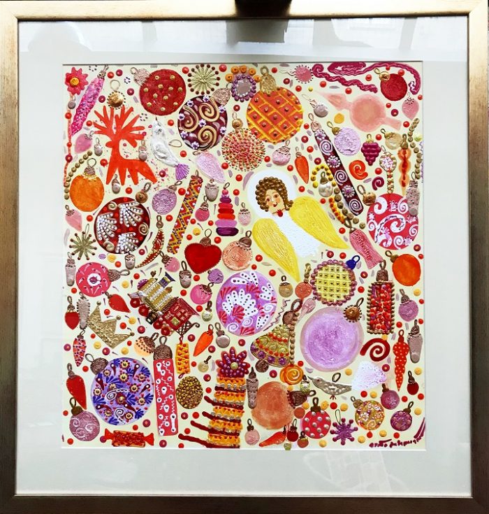 რაც მიყვარს, ყველაფერი გამოიფინა – ქორწინების, ნეფე-დედოფლის, შეყვარებულების, მეგობრობის თემაზე შექმნილი ნამუშევრები. ამის გარდა, გამოიფინა რამდენიმე ნატურმორტი, ორი სიუჟეტი სახარებიდან – „შობა“ და „ხარება“, ქართულ თემატიკაზე შექმნილი ლურჯი კომპოზიციები, აბსტრაქტული ხალიჩებივით აწყობილი რამდენიმე კომპოზიცია. ფერწერა, ზეთით, აკრილით და შერეული ტექნიკით შესრულებული ნამუშევრები.