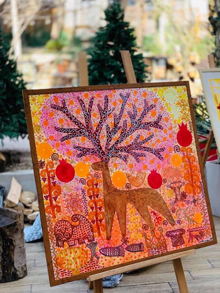 მიყვარს ქართული სიმბოლოები მითოლოგიიდან, ორნამენტიკიდან… ხშირად ვხატავ ლურჯ ირმებს, ხარს, ლომს, დედაბოძებს, ვაზებს, ჩვენს ქართულ ბორჯღალს, რომელსაც სხვადასხვა ფორმა აქვს. ქართულ სიმბოლოებს ჩემეული ხედვით ვხატავ… ვცდილობ ქართული და ჩემეული იყოს ყველაფერი.