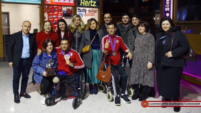 ლევან იზორია გამარჯვებულ პარასპორტსმენებს აეროპორტში დახვდა (ფოტოკოლაჟი)