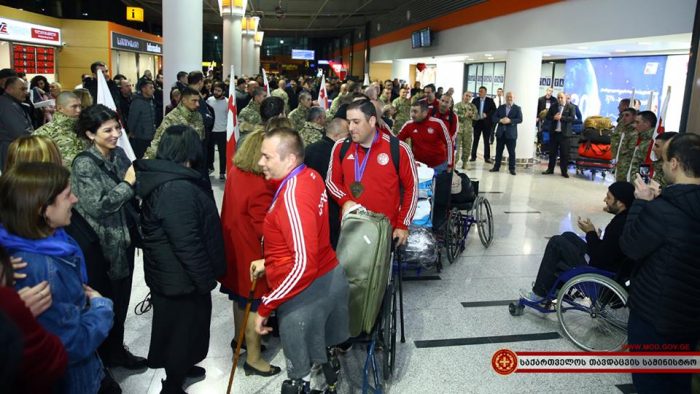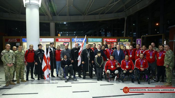 აშშ-ში, პენდელტონის საზღვაო ქვეითთა ბაზაზე გამართულ „საზღვაო ქვეითთა თამაშებიდან“, დაჭრილი და დაშავებული სამხედრო მოსამსახურეების გუნდი საქართველოში 38 მედლით დაბრუნდა. პარასპორტსმენებს თბილისის საერთაშორისო აეროპორტში თავდაცვის მინისტრი ლევან იზორია და თავდაცვის ძალების მეთაური, გენერალ-მაიორი ვლადიმერ ჩაჩიბაია დახვდნენ.
