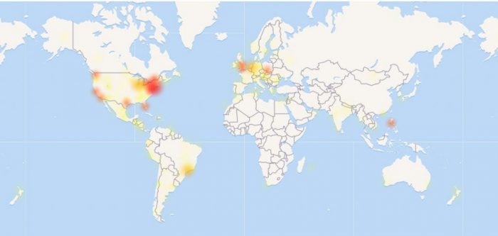 რუკაზე წითლად და ყვითლად ის რეგიონებია აღნიშნული, სადაც ფეისბუქი შეფერხებით მუშაობს. საქართველო ყვითელ ზონაშია მოქცეული.