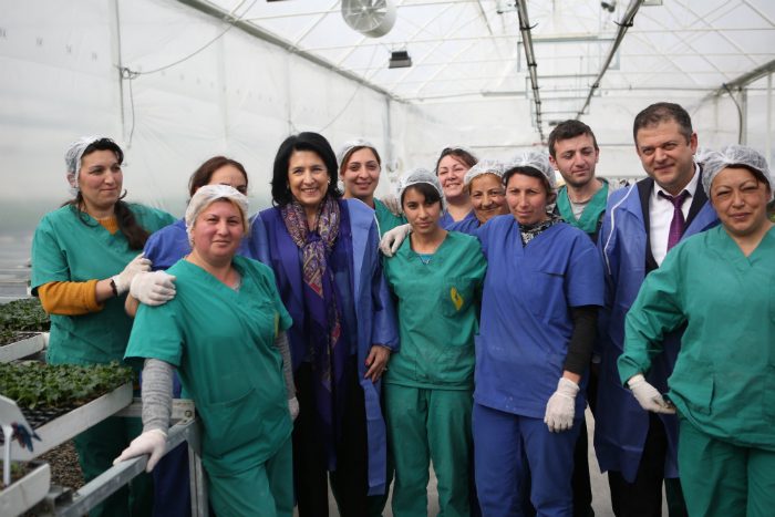 „მარნეულის მუნიციპალიტეტის სოფელ დამია–გეურარხის სასათბურე მეურნეობა 2014 წელს გაისხნა. სათბური 2 ჰექტარ მიწის ფართობზეა აშენებული და მისი წარმოებადობა, წელიწადში, 300-400 ტონა ბოსტნეულს შეადგენს. სალომე ზურაბიშვილმა, ასევე, დაათვალიერა მარნეულის მუნიციპალიტეტის სოფელ აზიზქენდში სახელმწიფოს ხელშეწყობით გახსნილი და თანამედროვე სტანდარტებით აღჭურვილი სასათბურე მეურნეობა – შპს „მზა ჩითილი”. მეურნეობაში, სადაც 30 ადამიანია დასაქმებული, წლიურად 30 მილიონი ჩითილის წარმოებაა შესაძლებელი. პროდუქციის რეალიზაცია ადგილობრივ ბაზარზე ხდება. საწარმოში, ჯამურად, 1 584 000 აშშ დოლარი ინვესტიცია გახორციელდა. კომპანია „მზა ჩითილი” ინოვაციური ტექნოლოგიების გამოყენებით ქართველ ფერმერებს დიდი რაოდენობის ბოსტნეულისა და ყვავილების ნერგებით ამარაგებს. აღინიშნა, რომ ანალოგიური საწარმო ჩვენს ქვეყანაში არ არსებობდა და ქართველ მეწარმეებს მსგავსი ჩითილების შეძენა მხოლოდ უცხოეთიდან უწევდათ“, – აცხადებენ პრეზიდენტის ადმინისტრაციაში.