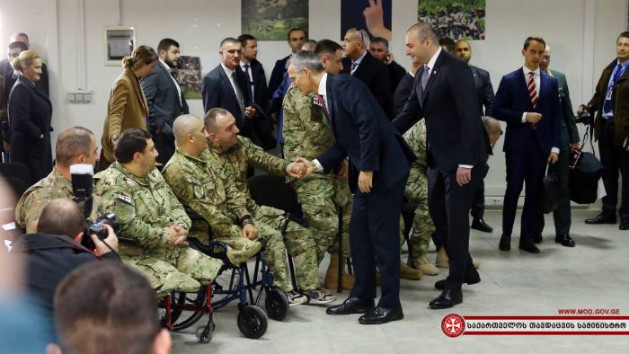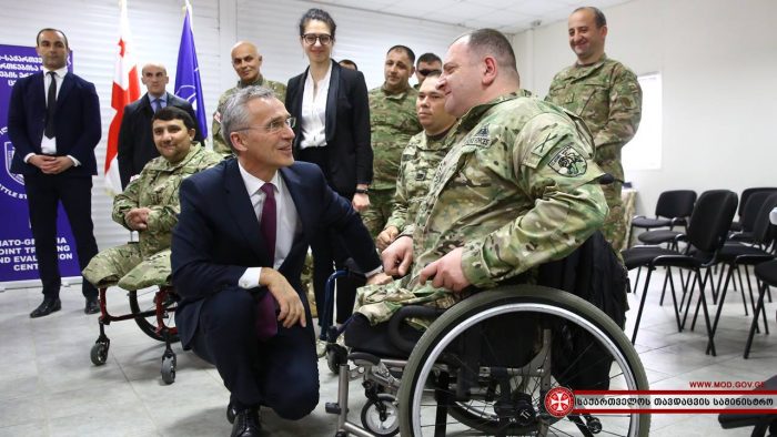 ღონისძიების ბოლოს, იენს სტოლტენბერგი ქართველ დაჭრილ და დაშავებულ სამხედრო მოსამსახურეებს შეხვდა.