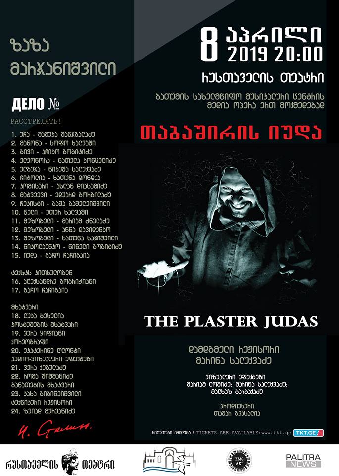 8 აპრილს, 20 საათზე, შოთა რუსთაველის სახელობის სახელმწიფო აკადემიურ თეატრში, ხელოვანთა კავშირი ZMG-ART და ბათუმის სახელმწიფო მუსიკალური ცენტრი, 9 აპრილის 30 წლისთავის პატივსაცემად, წარმოადგენს მედია ოპერას – „თაბაშირის იუდას“.