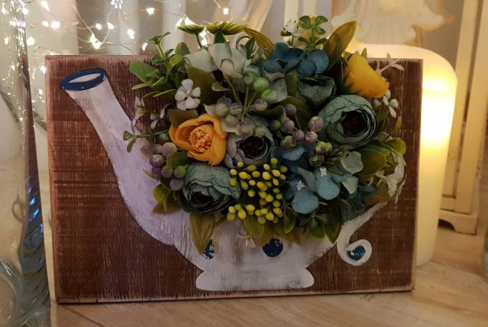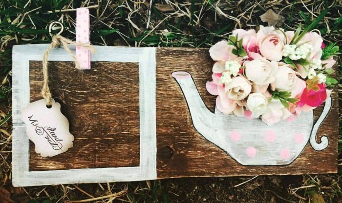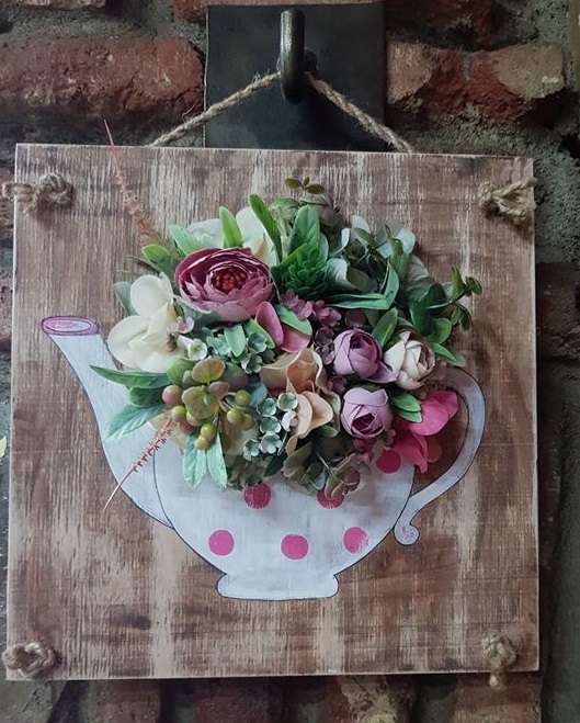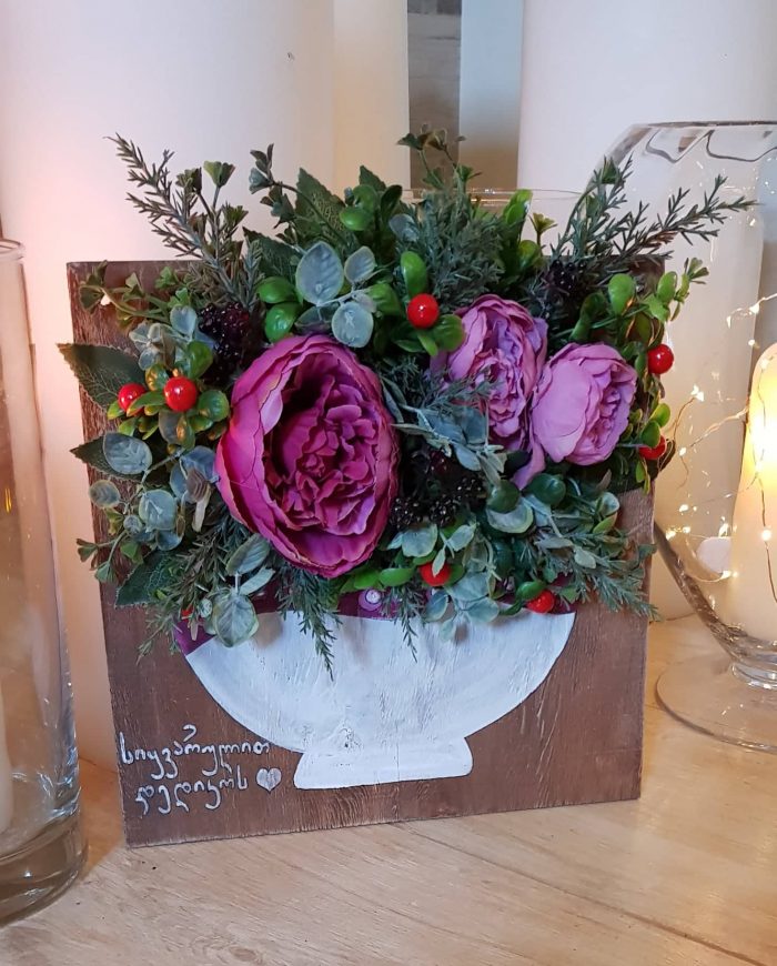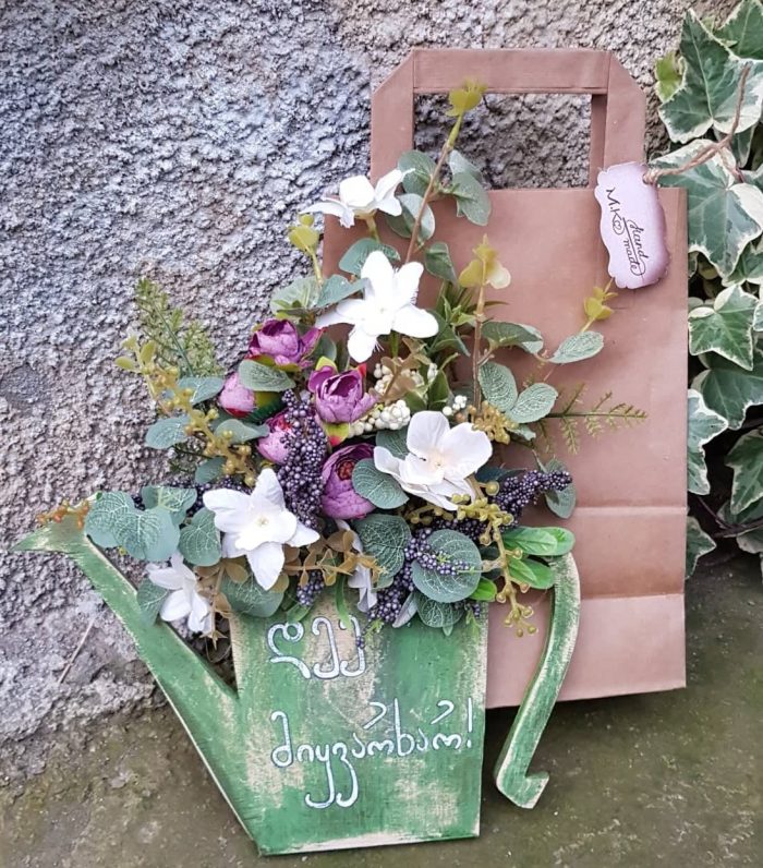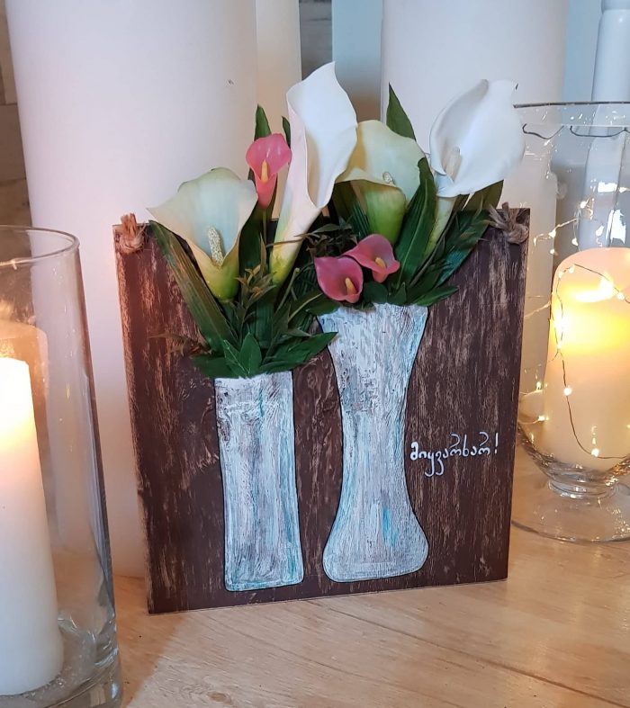 – დიახ, ყველაზე დიდი მოთხოვნა ამ ნამუშევარზეა. „დედა, მიყვარხარ“, – ეს იყო პირველი იდეა. შემდეგ კი სხვა იდეებიც მიემატა. ეზოში მრავალი დეკორცია მაქვს – სხვადასხვა ჩაიდანში ჩარგული ყვავილებით და მცენარეებით, რადგან ჩაიდნები ძალიან მიყვარს, ვსინჯე დახატვა და შემდეგ მასში ჩავსვი ხელოვნური ყვავილები.