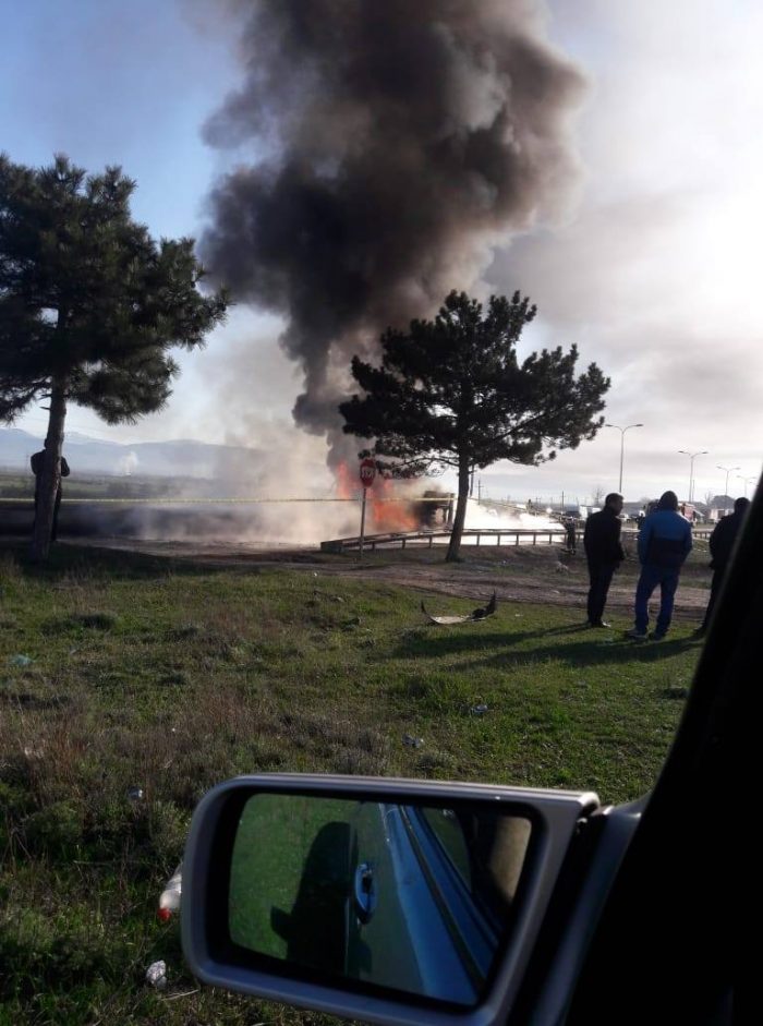 ავტობანზე ბენზინმზიდს ცეცხლი გაუჩნდა – დაიღუპა ერთი ადამიანი (ფოტოები)