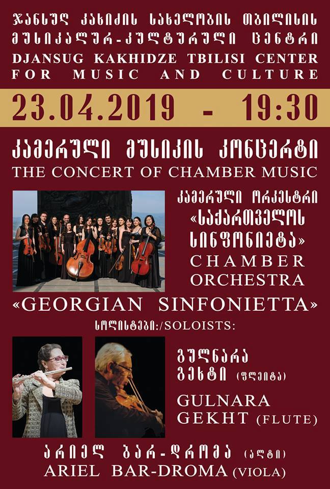 23 აპრილს, 19:30 საათზე, ჯ. კახიძის სახელობის თბილისის მუსიკალურ – კულტურული ცენტრის მცირე დარბაზი არიე ბარ დრომას კამერული მუსიკის კონცერტს უმასპინძლებს.