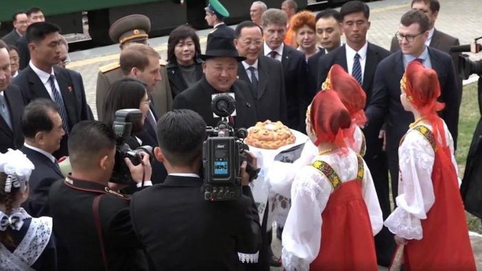 ჩრდილოეთ კორეის ლიდერის, კიმ ჩენ ინის ტყვიაგაუმტარი მატარებელმა დღეს დილით, ისტორიაში პირველად, რუსეთის საზღვარი გადალახა. ის ჰასანის სადგურზე გაჩერდა, სადაც მას პრიმორსკის კუთხის გუბერნატორი და სხვა ჩინოვნიკები დახვდნენ. კიმ ჩენ ინის მატარებლიდან წითელ ხალიჩაზე გადმოვიდა და რუსული ტრადიციული “კარავაიც” გასინჯა.