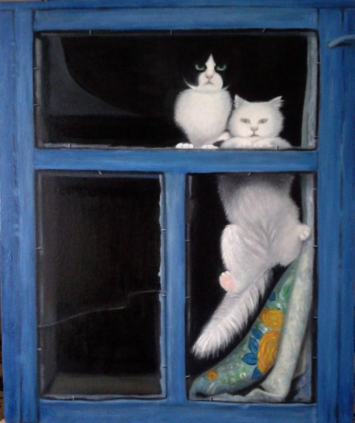 მას შემდეგ ჩვენი უსაყვარლესი კატა გახდა და ჩვენთან ერთად „მომთაბარე“ ცხოვრებას ეწევა. მის თვალწინ იქმნება ჩემი ნახატები, ცოცხალი მოწმეა.