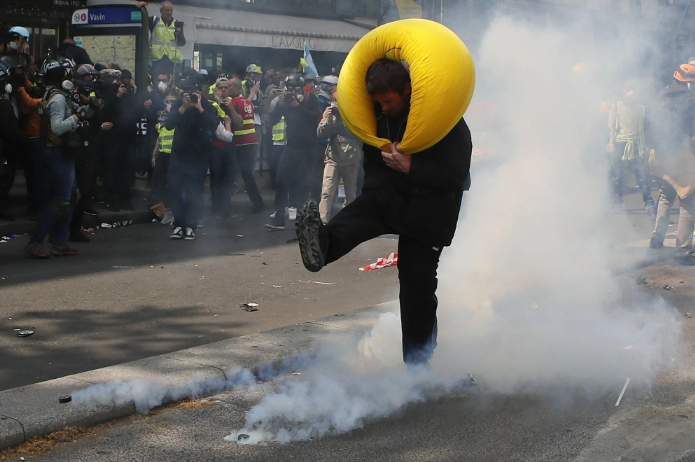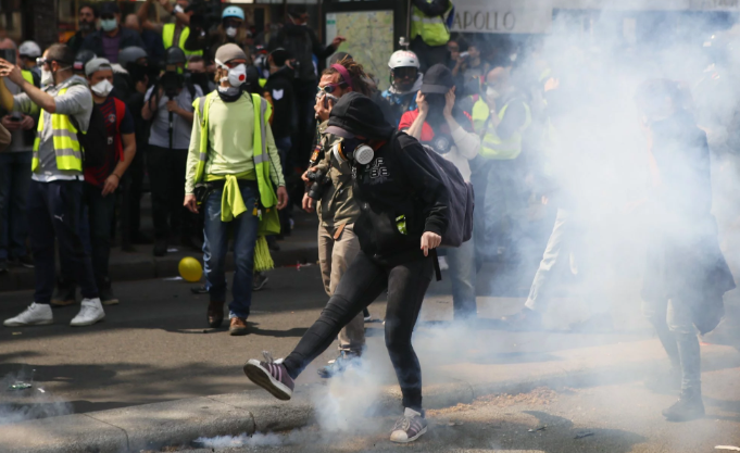 პარიზში საპირველმაისო დემონტრაცია სამართალდამცავებსა და მანიფესტანტებს შორის შეტაკებაში გადაიზარდა. დემონსტრანტებმა სამართალდამცავებს ქვების სროლა დაუწყეს, ასევე, ცეცხლი წაუკიდეს ავტომობილებს. ამის საპასუხოდ პოლიციამ ცრემლმდენი აირი გამოიყენა.