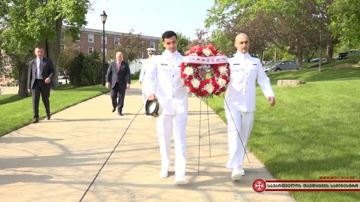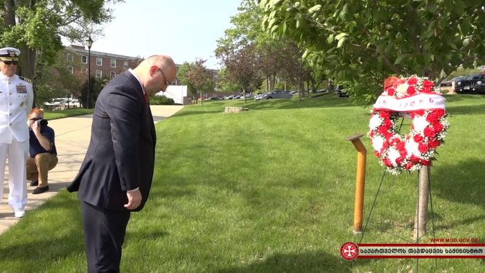 ევან იზორიამ სასწავლებლის ტერიტორიაზე მდებარე ქართველი კადეტების მემორიალი გვირგვინით შეამკო.