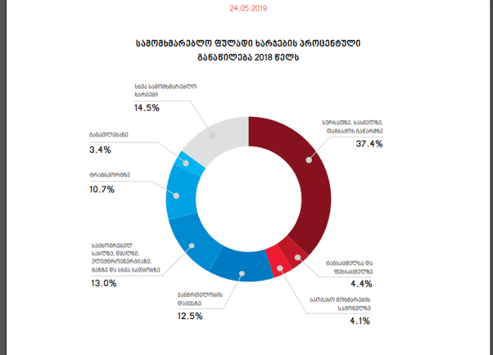 რაც შეეხება ხარჯებს – 2018 წელს საქართველოს მოსახლეობის საშუალო თვიურმა ხარჯებმა 1,164.5 მილიონი ლარი შეადგინა, რაც 0.1 პროცენტით აღემატება წინა წლის შესაბამის მაჩვენებელს.