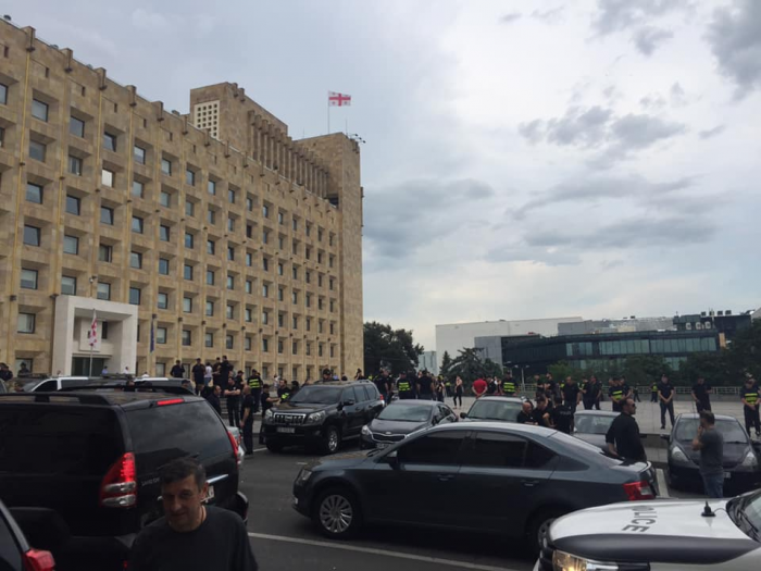 მთავრობის ადმინისტრაციის შენობასთან, სადაც 19:00 საათზე ლგბტ თემის წევრებმა და მათი მხარდამჭერებმა “თბილისი პრაიდის” ორგანიზებით აქცია უნდა გამართონ კონტრაქციაც იმართება.