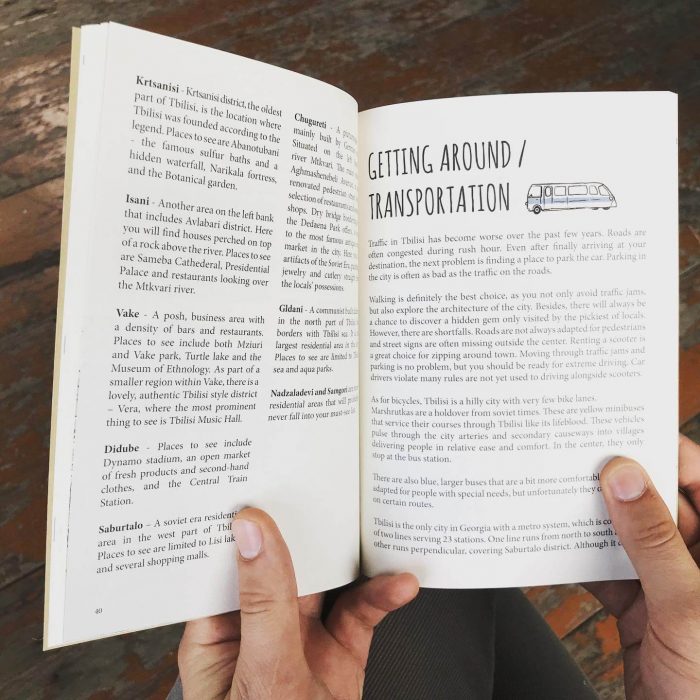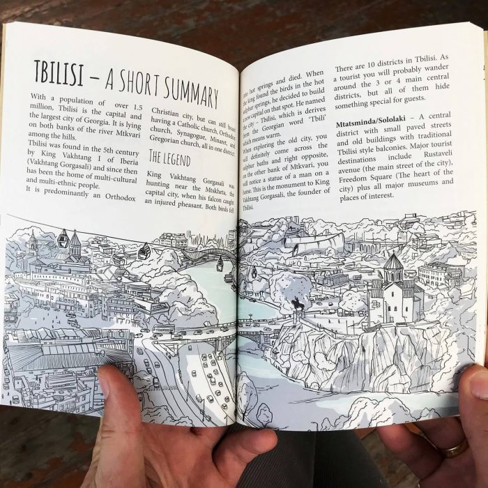 ამიტომ გადავწყვიტეთ, უფრო კარგად მოგვეყარა თავი იმ ცოდნისა და ინფორმაციისთვის, რაც ჩვენ ამ სამი წლის განმავლობაში შევაგროვეთ ჩვენი მეგობრებისგან, მოგზაურებისგან, რომლებიც გამუდმებით გვწერდნენ. ეს არ არის სტანდარტული გიდი, უფრო არის საქართველოს ისტორია, გეოგრაფია, კუთხეები, ჩვენი ჩვევები, როგორი ადამიანები ვართ, როგორ გვიყვარს სტუმარმასპინძლობა. ანუ ჩვენ – ქართველებმა უცხოელებს საქართველოზე მოვუყევით და ეს ჩავტიეთ 92 გვერდში.