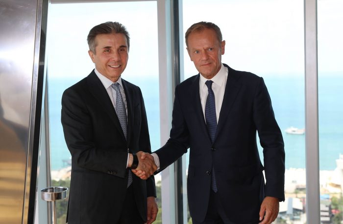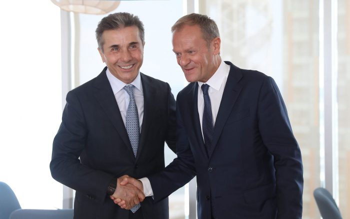 მმართველი პარტიის თავმჯდომარემ პრემიერმინისტრობის პერიოდში დონალდ ტუსკთან პირველი შეხვედრა გაიხსენა და ხაზი გაუსვა იმ ფაქტს, რომ ევროპული საბჭოს პრეზიდენტი საქართველოს კარგი მეგობარია.