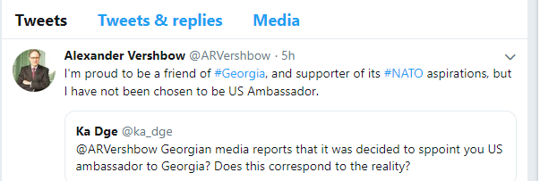 ვერშბოუ საქართველოში ელჩად მისი დანიშვნის შესახებ ინფორმაციას უარყოფს
