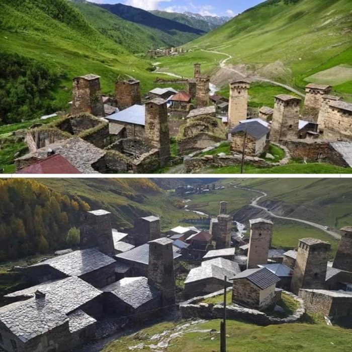 საქართველოს კულტურული მემკვიდრეობის დაცვის ეროვნული სააგენტოს დირექტორი ნიკა ანთიძე ფეისბუქის საკუთარ გვერდზე აქვეყნებს ორ ფოტოსურათს წარწერით: „ჩაჟაში (უშგული) 5 წლის წინ და დღეს“.