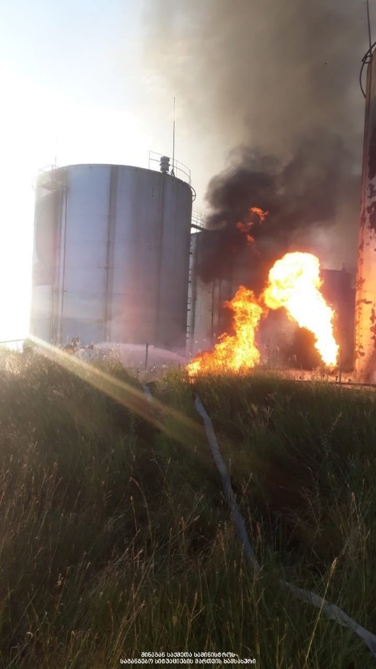 სამტრედიაში ნავთობბაზაზე საწვავით სავსე რეზერვუარს ხანძარი გაუჩნდა