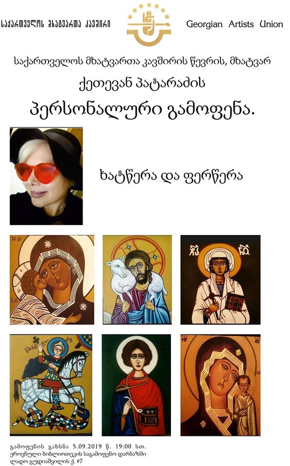 5 სექტემბერს, 19:00 საათზე, საქართველოს მხატვართა კავშირის ორგანიზებით, ეროვნული ბიბლიოთეკის საგამოფენო დარბაზში ქეთევან პატარაძის პერსონალური გამოფენა გაიმართება.