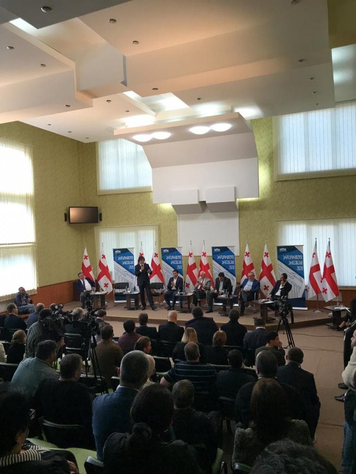 შეხვედრას, რომელიც თელავის სახელმწიფო უნივერსიტეტში მიმდინარეობს პარლამენტის თავმჯდომარე არჩილ თალაკვაძე უძღვება. შეხვედრას ასევე ესწრებიან მმართველი გუნდის წევრები, პარლამენტის მოქმედი და ყოფილი თავმჯდომარეები, ასევე განხილვაში მონაწილეობენ ოპოზიციური პარტიების წარმომადგენლები.