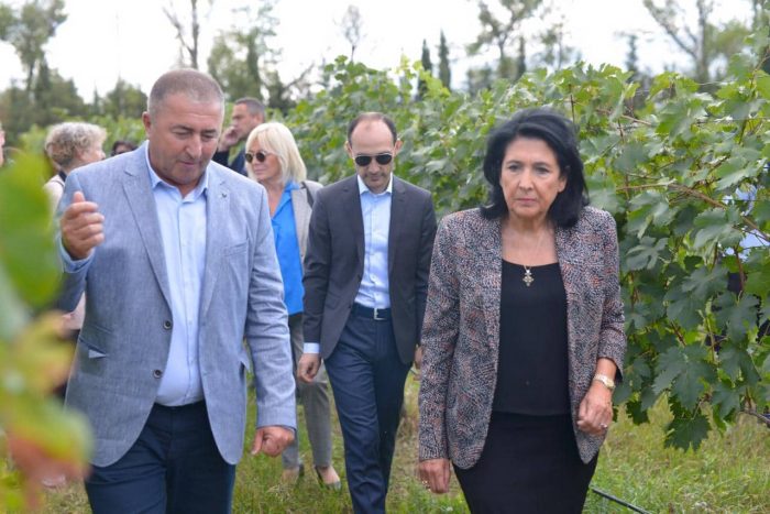 პრეზიდენტს კვლევით ბაზაზე სოფლის მეურნეობის მინისტრმა ლევან დავითაშვილმა, მცენარეთა ინტეგრირებული დაცვის კვლევის სამსახურის უფროსმა, ზურაბ ხიდაშელმა და სოფლის მეურნეობის სამეცნიერო-კვლევითი ცენტრის დირექტორმა, ლევან უჯმაჯურიძემ უმასპინძლა