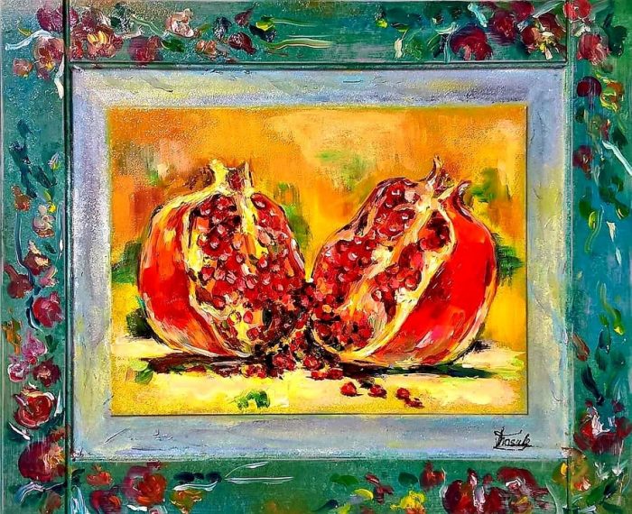 – არ აქვს მნიშვნელობა, სად ცხოვრობ. შეიძლება სტილი შეიცვალო, მაგრამ რაც შენს სულშია და რასაც გულით გრძნობ, ნახატებში ეს აისახება. მართალს ბრძანებთ, ჩემს ნამუშევრებში ხშირად შეხვდებით ბროწეულებს, ყურძენს და ქართული კულტურისთვის დამახასიათებელ ნიშნებს, მათ მრავალი სიმბოლური დატვირთვა აქვთ და ამიტომ დომინირებს ჩემს ნამუშევრებში.