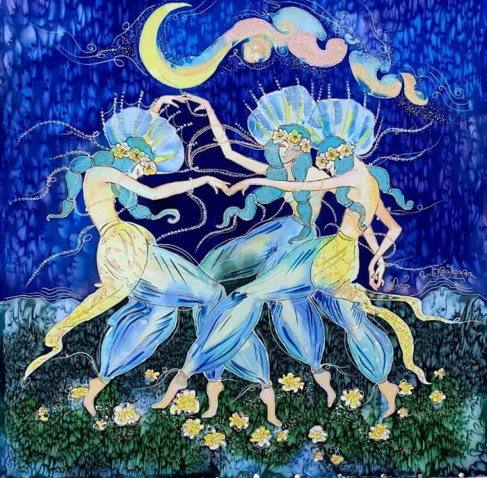 – ჩემთვის ბატიკა მხოლოდ რეზერვის სითხის ხაზებს შიგნით ჩასხმული ფერი არ არის. ბატიკასაც ფერწერის მსგავსად ვქმნი, არ ვიყენებ პირდაპირ ფერს, ყოველთვის ვაზავებ და თვითონ ვადგენ ფერებს.