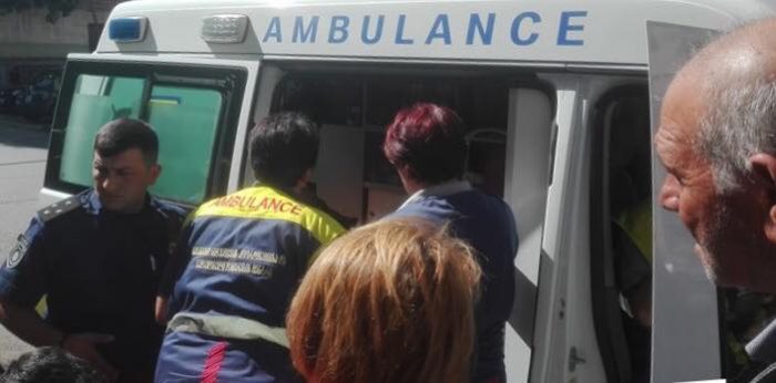 „თავში აქვს დარტყმული, გადასაყვანი და გამოსაკვლევია“, – ამბობს სასწრაფო სამედიცინო დახმარების ექიმი.