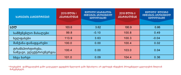 პირველ კვარტალთან შედარებით, 2019 წლის მე-2 კვარტალში მშენებლობის ღირებულების ინდექსი 3.6%-ით გაიზარდა.