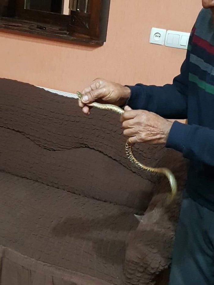 “სახლიდან გავდიოდი, როცა კარებთან გველი დავინახე როგორ შემოდიოდა სახლში. სახლში შვილიშვილები მყავს და არ მინდოდა შემეშინებინა. წელს სიცივეები მალე დაიწყო და გველების მომრავლებაც ამას უკავშირდება”, – გვიყვება ოჯახის უფროსი.
