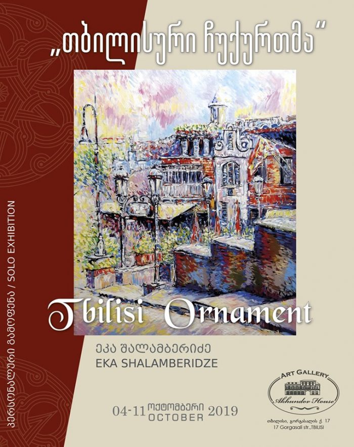 4-დან 11 ოქტომბრამდე გალერეა Akhundov House-ში თბილისის სამხატვრო აკადემიის კურსდამთავრებულის, ეკა შალამბერიძის პერსონალური გამოფენა – „თბილისური ჩუქურთმა“ გაიმართება.