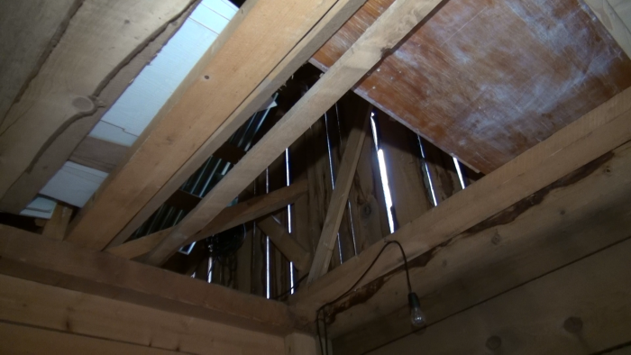 ჩამოშლილი ჭერი, ამორტიზებული იატაკი, სტიქიის შედეგად ნახევრად დაზიანებული ხის ფიცრული- ლამზირა კირკიტაძე ბათუმში, მარკოს აჭარელის ქუჩაზე, ორ მცირეწლოვან შვილთან ერთად, 8 წელია გაუსაძლის პირობებში ცხოვრობს.