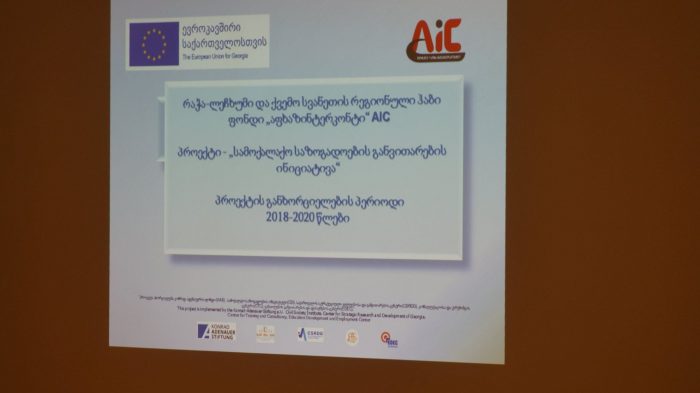 შეხვედრის მიზანს, პროექტის სამიზნე აუდიტორიებისა და დაინტერესებული მხარეების წარმომადგენლების თანამონაწილეობით, საქმიანობების პრეზენტაციები წარმოადგენდა. ღონისძიება ფონდი “აფხაზინტერკონტის“ (AIC) მიერ იყო ორგანიზებული .