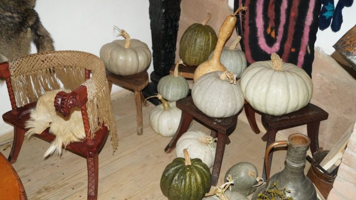 ეზოში შესვლისთანავე ყურადღებას ორიგინალური ნივთები, აქსესუარები და შემოდგომის ათასფერი ყვავილები იქცევს. აქვე შეხვდებით უძველეს ქვებსა და პირველი მატარებლის გასანათებელ ფარანსაც კი. ერთ პატარა ეზოში მოქცეული მთელი საქართველო და არქეოლოგიური ნიმუშებით გაფორმებული სახლი – ეს ყველაფერი საოჯახო სასტუმრო “მხატვრის სახლში” დაგხვდებათ.