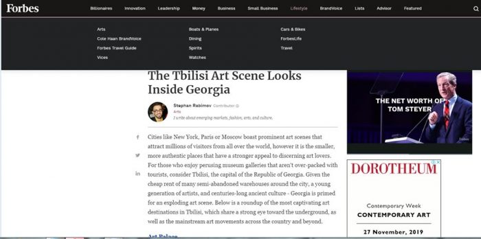 „ეს არის ადგილი, რომელიც აუცილებლად უნდა ნახოთ“, – ასე იწყება ჟურნალ Forbes-ის სტატია, რომელშიც საქართველოს ხელოვნების სასახლეა აღწერილი.