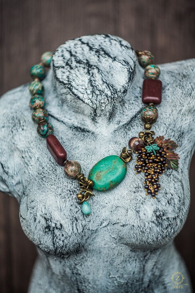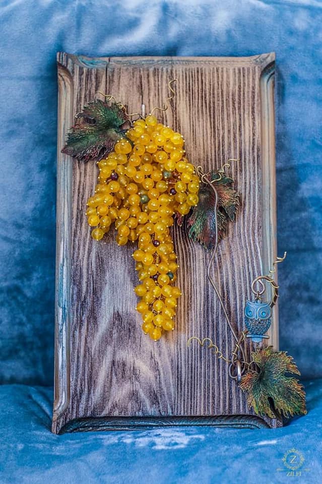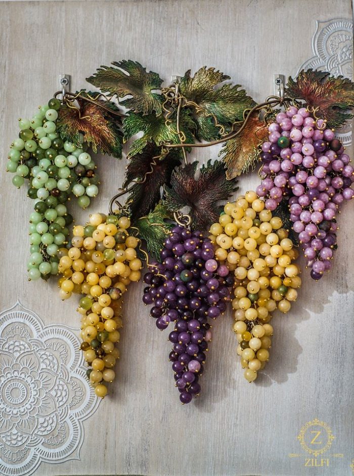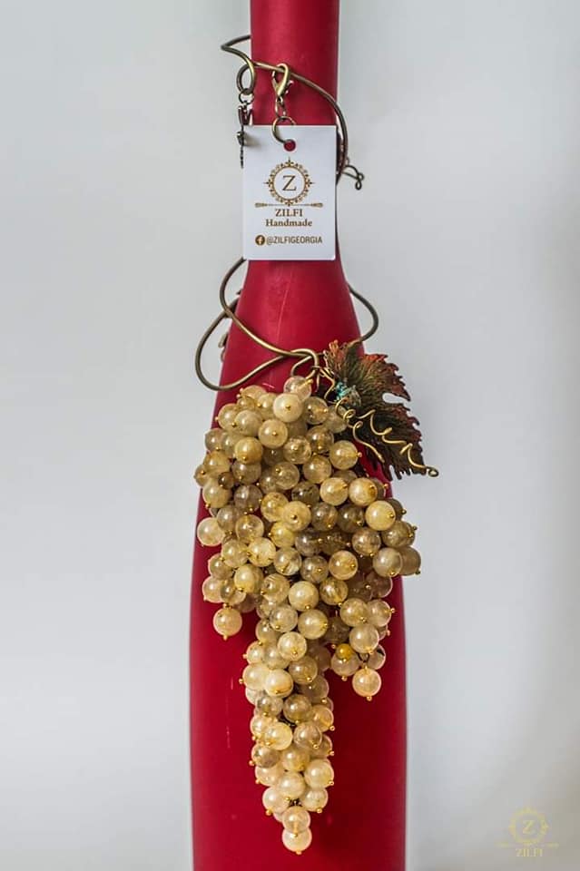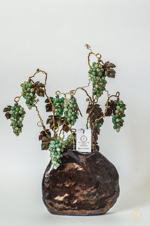 ჩემს შემოქმედებაში ვაზის მტევანი წარმოჩენილია სხვადასხვა აქსესუარსა და სამკაულში, როგორც ქალბატონებისათვის, ასევე მამაკაცებისათვის. მასალად ვიყენებ ნახევრად ძვირფას ქვებს, რაშიც ბუნებრივად გამოისახება ყურძნის მარცვალი და ემსგავსება მტევანს. ეს მსგავსება ყველაზე მეტად მოსწონთ როგორც უცხოელ ტურისტებს, ასევე ადგილობრივ მომხმარებლებს, რაც უზომოდ მახარებს და სტიმულს მაძლევს.