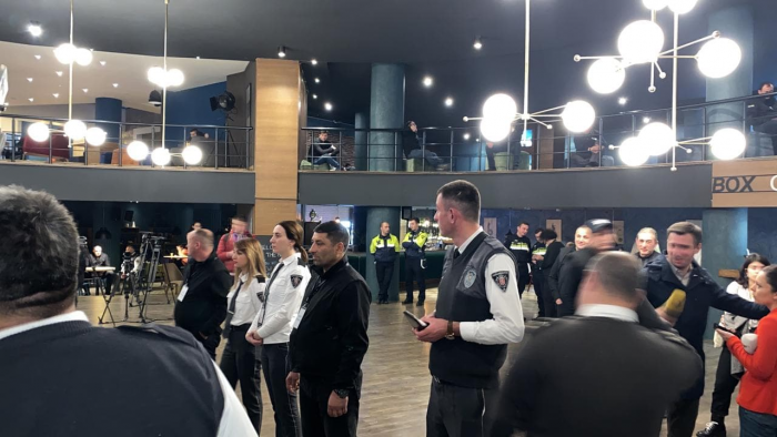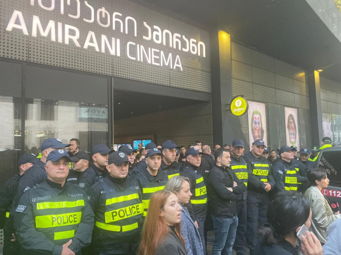 კინოთეატრების შიდა ტერიტორიაზე გამკაცრებულია უსაფრთხოება და მობილიზებულია სამართალდამცავთა განსაკუთრებით დიდი რაოდენობა.